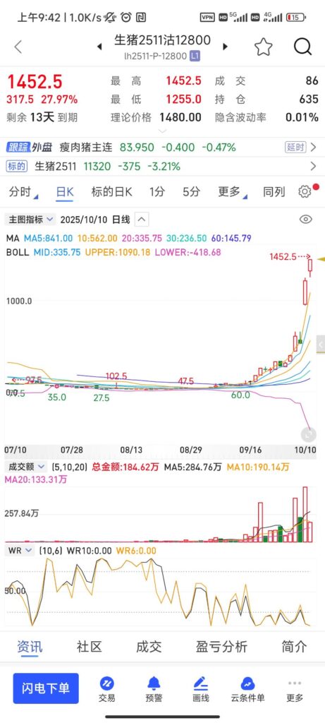 生猪思路,看到鸡蛋和蛋农信息,较多蛋鸡未宰杀,博取中秋国庆一波行情后处理,预计鸡蛋供应偏多,几亿只蛋鸡对猪肉有一定影响。但是供需并不是调研得很彻底,有一定运气。因此四手虽然买入早,但是操作上较早就卖出了,最后一手于国庆前,12倍涨幅卖出,事实上节后强势再翻番