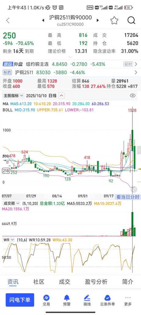 铜在80左右想入而未入,第二天就快速拉升,节前高价入,节后博取波动未能产生收益,看涨幅已高,成交额较大,后续不留恋选择清理,应该说清理成功
